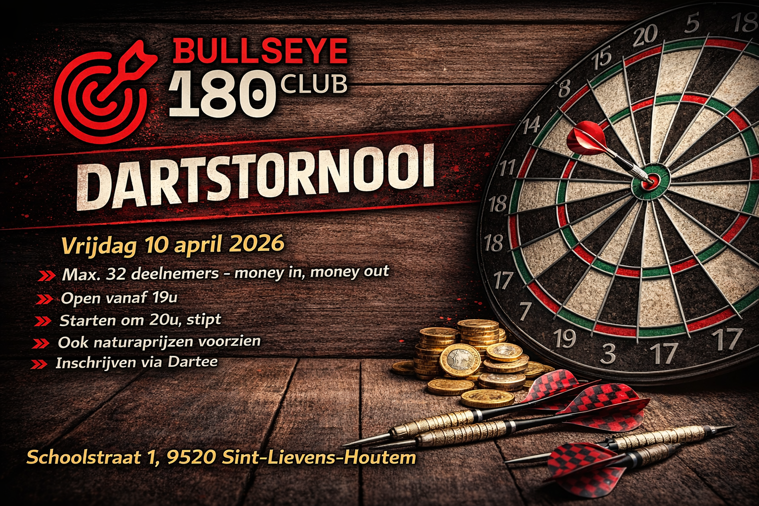 Op vrijdagavond 10 april 2026 organiseren we een dartstornooi. 💯