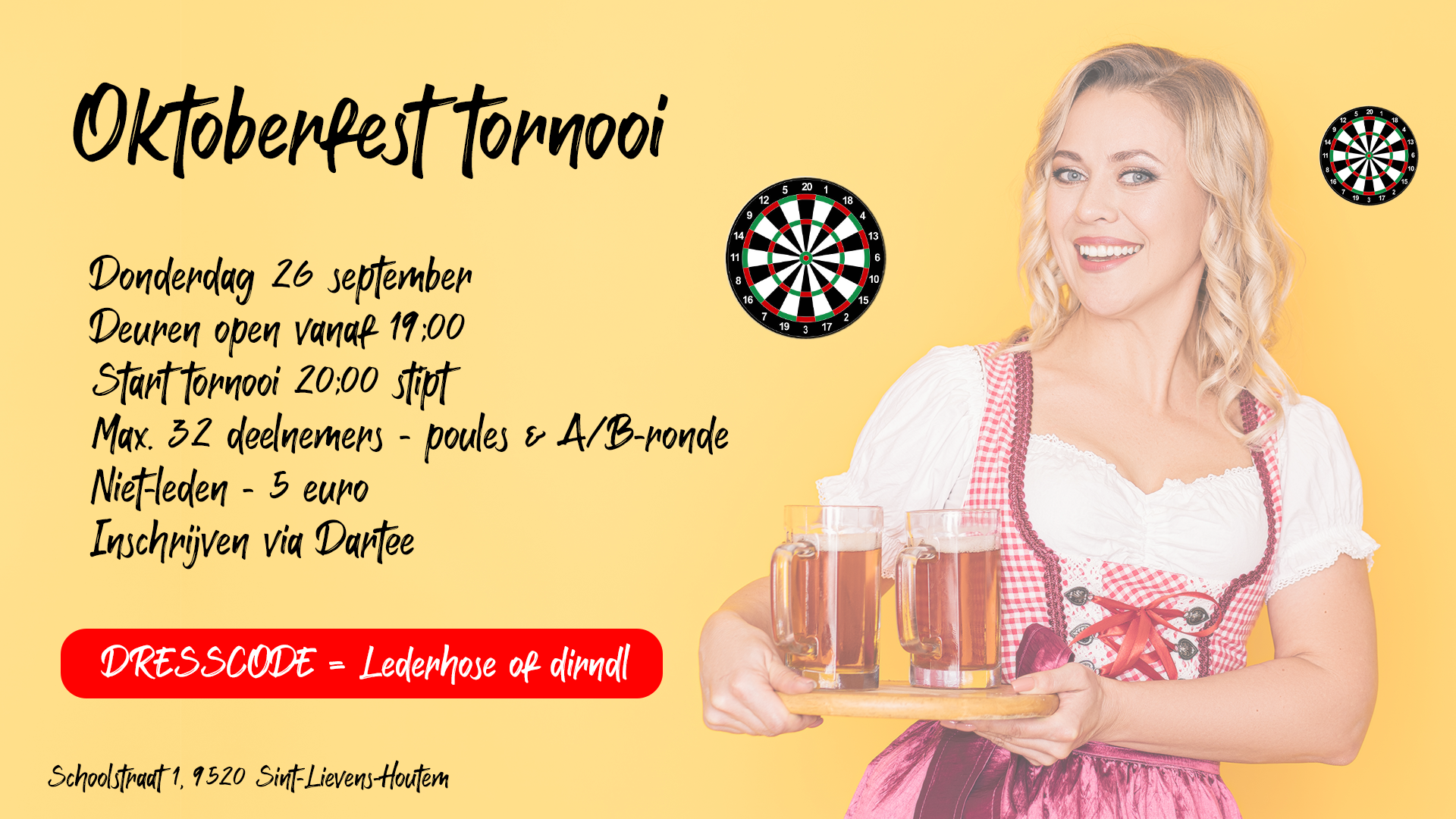 🕖 Deuren open om 19u00 🎯 Start tornooi 20u00 STIPT ✅ Max. 32 deelnemers - poules & A/B-ronde 💰 Niet leden 5 euro 📩 Inschrijven via Dartee