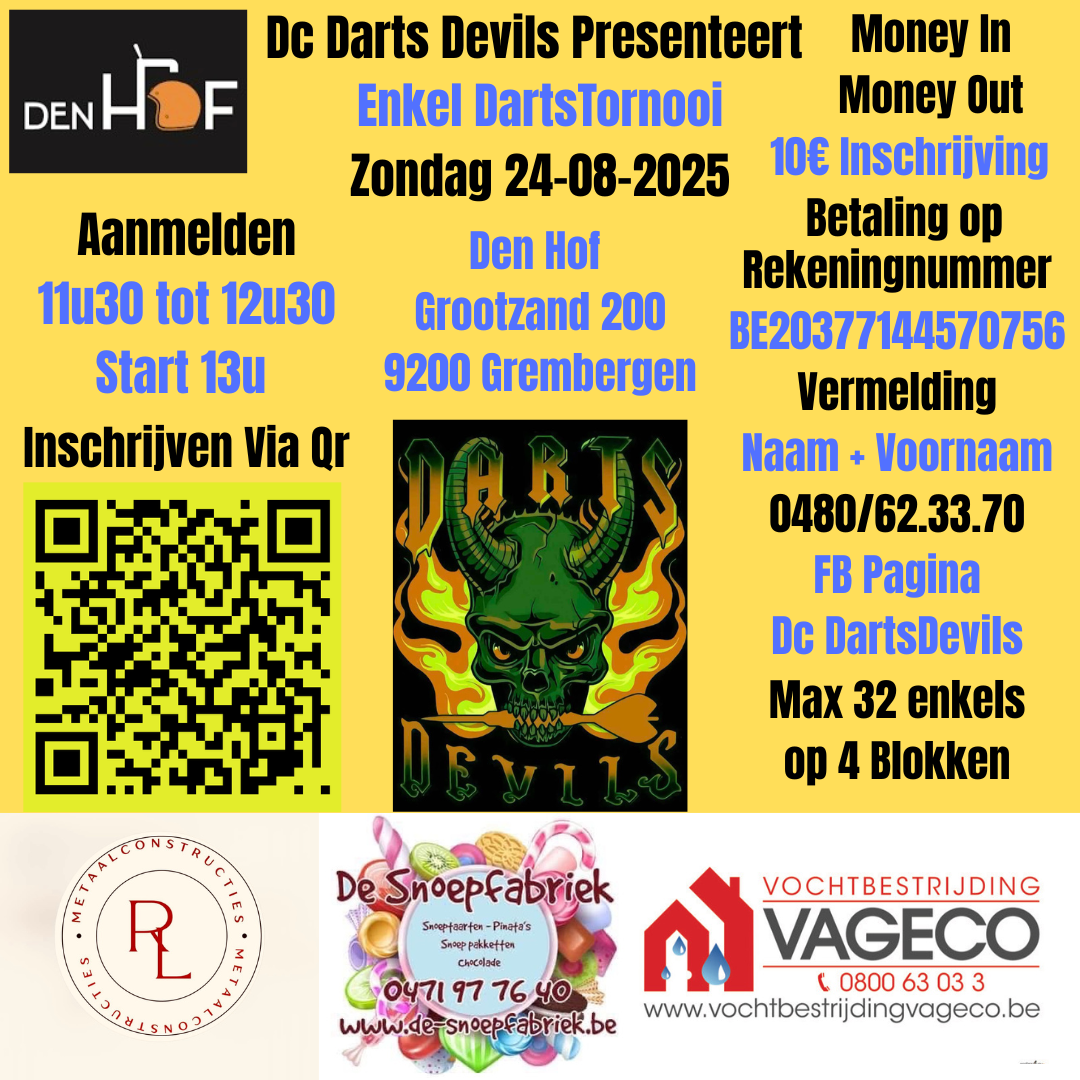 Single Money In Money Out Tornooi Zondag 24 Augustus 2025